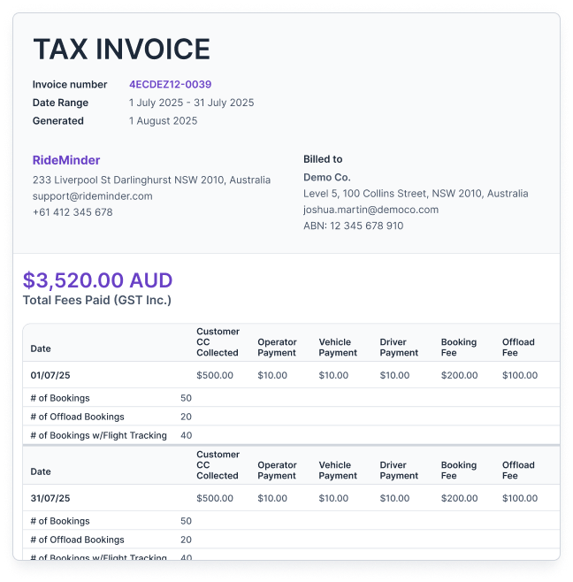RideMinder calculates and processes daily earnings payouts automatically - based on completed jobs, contracts, and agreed terms - with clear records and full transparency.